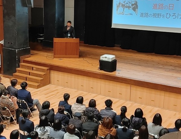 午前中に進学コース、午後に特進コースと2回に分けて行いました。
