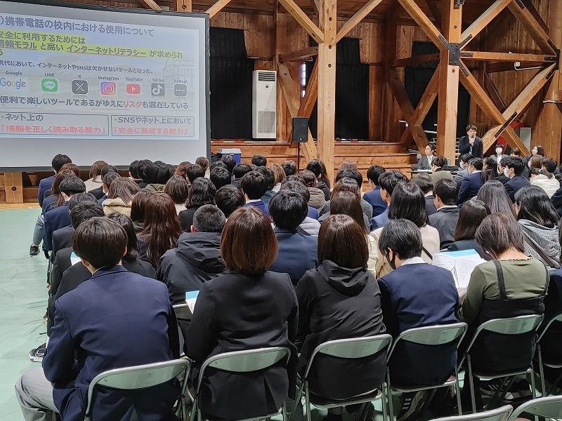 2025年度に本校への入学を予定している生徒・保護者向けの1回目のガイダンスが15日、大講堂・体育館で開かれました。