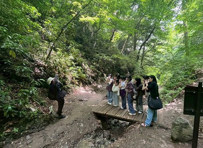 ◆1学年は、各クラス時間ごとに高尾山口駅に集合。生徒同士のコミュニケーションを図りながら自然の中を歩く「東野Walk」のスタートです。