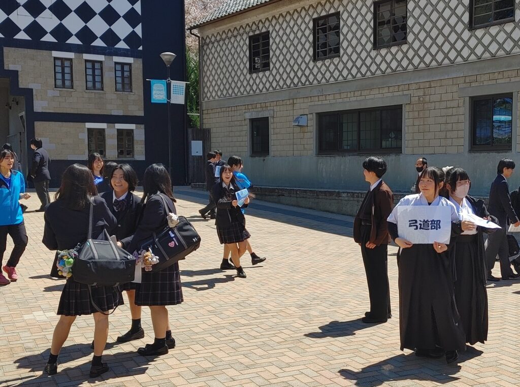 その後に行われた新入生歓迎会では、新入生が各クラブを巡り、見学したり体験したりしながら、各クラブの先輩や顧問の先生に色々な話を聞くことができました。